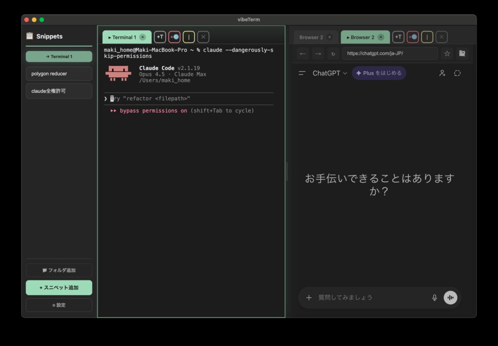 vibeTermは、そんなvibe coder向けに設計したオールインワンのターミナル環境です。